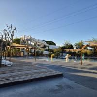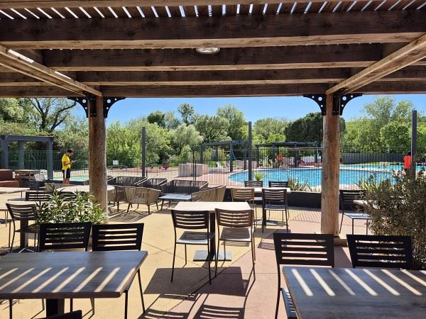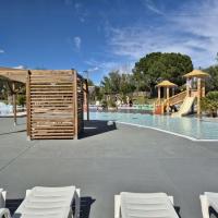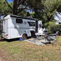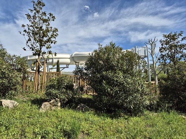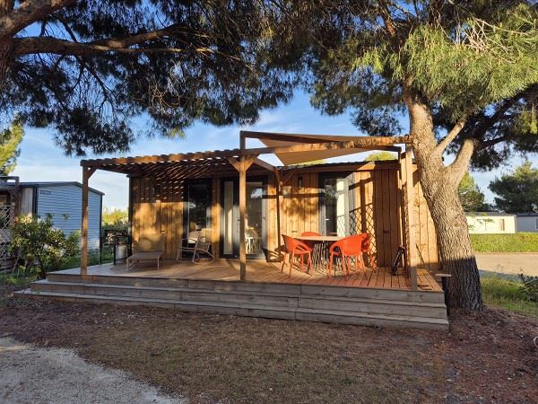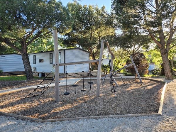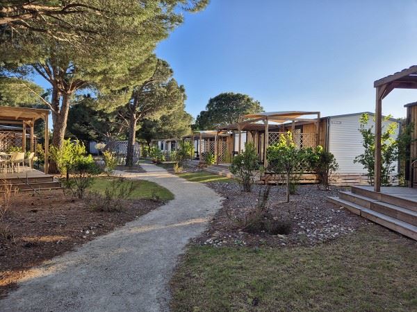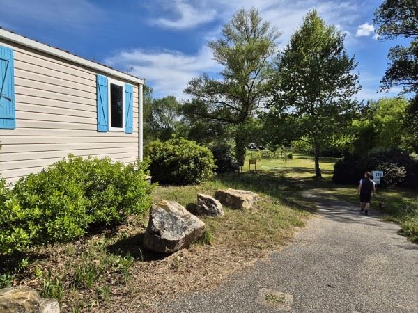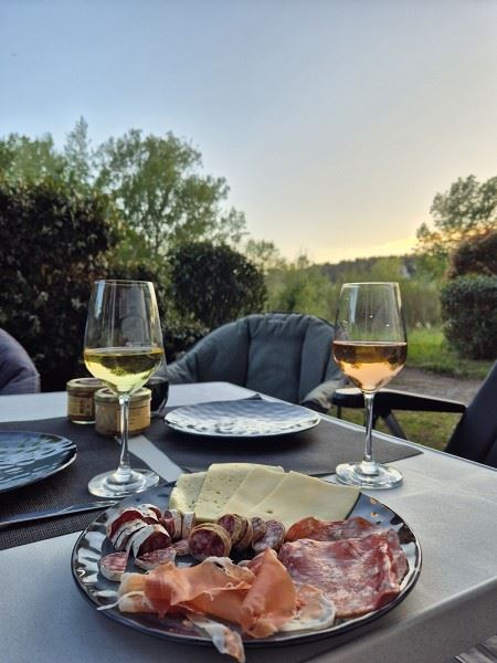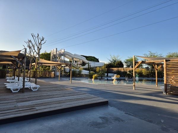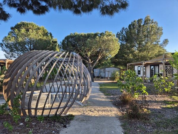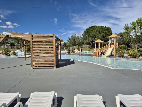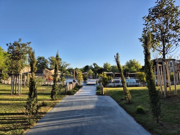 Der Platz bietet sowohl Standplätze als auch Mietunterkünfte. Die Mobilehomes verschiedener Größe und Kategorien befinden sich im vorderen Teil des Areals. Besonders schön ist der Glamping-Bereich. Die sehr modern gestalteten Gebäude liegen in einer kleinen Parkanlage mit hübsch angelegten Wegen und zwischendurch verschiedene Sitz- und Picknick-Möglichkeiten. Sehr stylisch und einladend. Die Stellplätze sind Richtung bzw. im Wald angeordnet und durch Hecken getrennt. Mit rund 100 qm bieten sie ausreichend Platz, wobei es auch den ein oder anderen Stellplatz gibt, in dem sich direkt mittendrin ein Baum befindet. Wir hatten den Platz Nr. 600, der sich ganz am Ende des Platzes befindet. Dahinter gibt es nur noch Wald und Wasser. Einziges Manko: Direkt am Stellplatz gab es kein Frischwasser. Dafür findet man über den Platz verteilt einzelne Wasserhähne, die jedoch nur mit Druckknopf zu bedienen sind. Somit dauert das Auffüllen der Gießkanne etwas länger. Herzstück des Platzes ist die sehr ansprechend gestaltete Poolanlage. Direkt daneben befindet sich das Restaurant mit Terrasse. Bequeme Sitzmöglichkeiten laden zum Verweilen ein. Im Restaurant besteht die Möglichkeit zur Brötchenbestellung. Dabei notiert man die gewünschte Menge an Croissants, Baguette oder Brötchen. Am nächsten Morgen holt man sie im Restaurant ab. Neben dem Restaurant befindet sich die Showbühne. Hier werden auch die ein oder anderen Animationsprogramme durchgeführt. Das Animationsteam war sehr engagiert und freundlich. In Richtung der Mobilehomes gibt es einen kleinen Supermarkt. Die Auswahl ist nicht groß, aber ausreichend für den Grundbedarf. Zusätzlich gibt es regionale Weine, Biere und sonstige Spezialitäten. Die Verkäuferin war sehr nett, hat uns bei der Wahl des richtigen Weins beraten und sich dafür extra selber noch einmal schlau gemacht. Für Kinder gibt es einen Kinderclub, auch eine Hüpfburg wird jeden Tag aufgestellt. Zusätzlich werden zahlreiche Sportarten angeboten, es gibt eine Bücherei, Fahrradvermietung und vieles mehr. Nähere Infos findet Ihr auf der Website.