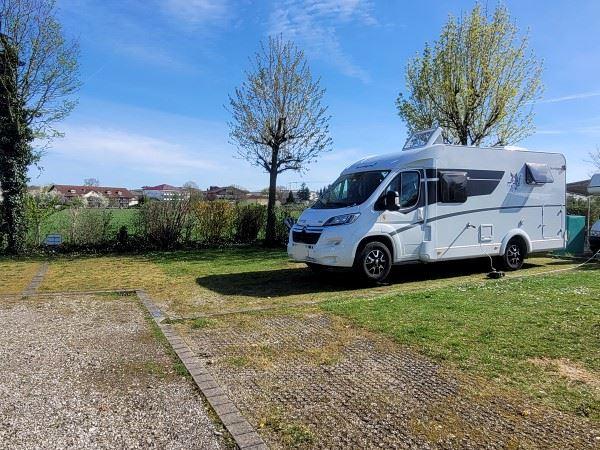 Gebucht hatten wir den Hundeplatz Typ B mit ca. 95 bis 115 qm und erhielten die Nummer 172 direkt am Ende des Platzes. Ein wundervoller Stellplatz!! Zum einen war an diesem Wochenende kaum etwas los; wir hatten gerade mal zwei Wohnmobile schräg gegenüber und zwei hinter uns. Zusätzlich genossen wir freie Sicht auf das Feld direkt neben uns. Ach wie schön!