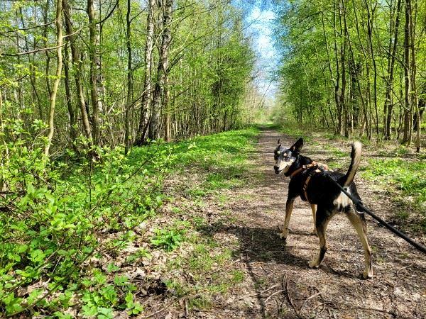 Ich liebe ja solche Wälder, die mit tausend verschiedenen Grüntönen aufwarten. Dazu an vielen Stellen verwuchert und einfach sich selbst überlassen; zwischendurch kleine Pfade. Genau das, was mir so gut gefällt. Auch die Hunde fanden es toll und kamen mit dem Schnüffeln gar nicht mehr hinterher.