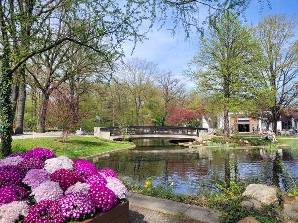Über 6 Hektar groß ist der zwischen den Thermen liegende Park und jedes Jahr werden die rund 3.000 qm großen Schmuck- und Blumenbeete mit großem Aufwand neu geplant. Noch nie wiederholten sich Form und Anordnung dieser Arrangements. Besonders schön ist der Park im Frühjahr, denn dann blühen über 140 verschiedene Tulpensorten. Und genau die durfte ich heute bestaunen.