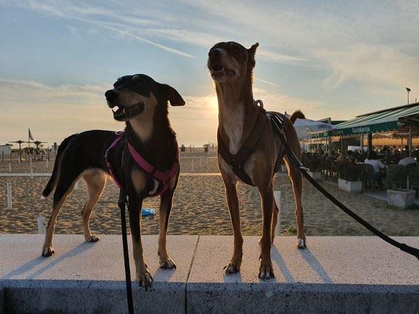 Nach etwa einer halben Stunde verließ ich den Hotelbereich und erreichte den offiziellen Hundestrand. Hier ging ja mal wieder mein Herz auf. Ein riesiges Areal mit Liegen für Mensch und Hund. Eingezäunt, damit niemand abhanden kommt. Es war schön, das unkomplizierte Zusammenleben der Vierbeiner hier zu sehen.