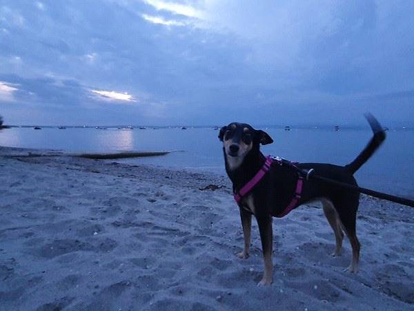 Etwas auf der Liege entspannt, ging es zwei Stunden später dann aber auch schon wieder zum Abendspaziergang mit den Hunden. Wir liefen die Strandpromenade entlang, die sich langsam lichtete. An einem kleinen Strandabschnitt durfte Benita dann auch endlich mal etwas Buddeln. Sie liebt es, im Sand herum zu flitzen und ihr war die Freude darüber richtig anzusehen. Die vorbei laufenden Leute lachten über ihr Spiel mit dem Sand. Und mein Herz ging natürlich wieder auf.