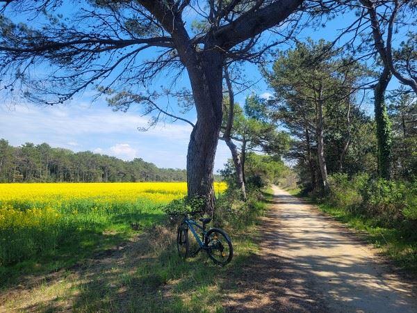 Wieder zurück am Platz, machten Anton und die Hunde es sich dort bequem. Ich schnappte mir das Rad und fuhr zum rund 6 Kilometer entfernten Leuchtturm von Bibione. Diesen hatte ich zwar bereits bei unserem ersten Aufenthalt im September 2021 besucht, war aber so begeistert davon, dass ich auf jeden Fall noch einmal dorthin wollte. Damals hatte ich die gesamte Strecke mangels eines Fahrrads zu Fuß zurückgelegt. Mit dem Rad ging es natürlich deutlich schneller, außerdem machte ich zwischendurch noch den ein oder anderen Schlenker.