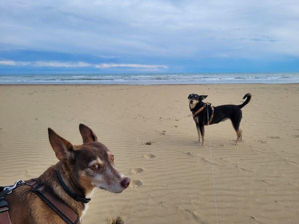 Benita bereitete mir allerdings leichte Kopfzerbrechen. Nicht nur, dass sie dieses Mal so gar keine Lust aufs Wegfahren hatte; sie zitterte und hechelte bei jedem noch so kleinen Geräusch und wirkte irgendwie unglücklich. Also ging es jetzt als erstes zum Strand. Und siehe da: Kaum ihre Pfötchen in den Sand gesetzt, blühte sie regelrecht auf, buddelte und fetzte durch die Gegend. Na Gott sei Dank – doch alles richtig gemacht.