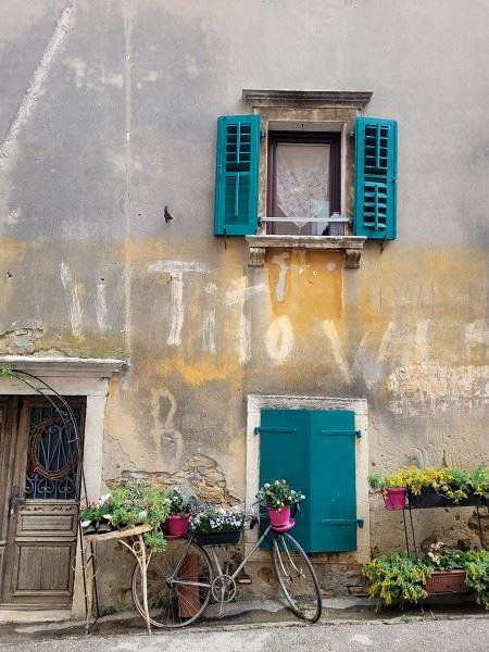 Jetzt aber nichts wie weg. Das war mir jetzt nicht mehr so ganz geheuer und ich spazierte weiter in den Ort Momjan. Nicht besonders viel erwartet, war ich schon innerhalb weniger Minuten vollkommen begeistert davon. Was für ein hübsches und einmaliges Dorf. So viele tolle, alte Häuserfassaden. So viele schöne Fenster und Türen. Genau das richtige für mich und meine Kamera.