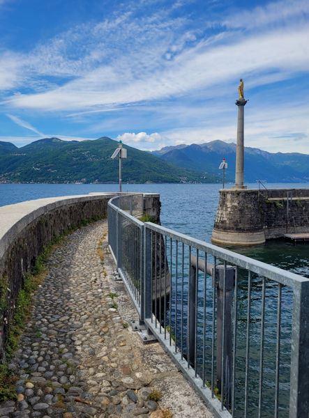 Über ein modernes Konstrukt (eine in den See hinausragende Plattform) ging es zur Piazza Libertà und nach kurzer Wartezeit mit dem Schiff ‘Daino’ wieder zurück nach Maccagno. Obwohl mir Luino gut gefallen hat und der Ort mit den verwinkelten Gassen und den schönen Kirchen durchaus seinen Reiz hat, war es mir dann doch auch schnell wieder zu trubelig. Busse, durchrauschende Autos, laute Motorräder … man fühlte sich hier zum Teil wie in einer Großstadt.