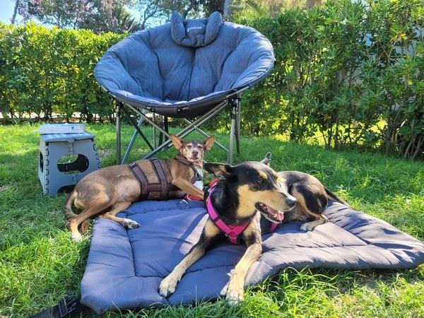 Die Hitze machte uns die Tage allerdings ganz schön zu schaffen. Normalerweise ziehen sich die Hunde tagsüber gerne mal ins Wohnmobil zurück. Doch das heizte sich in diesen Tagen regelmäßig auf 32 bis 35 Grad auf. Trotz Ventilator keine Chance. Also verbrachten sie den ganzen Tag unter der Markise und dem Tisch. Sobald der Schatten kam, wanderten wir mit diesem mit. Das führte natürlich dazu, dass die Hunde abends unglaublich müde und fertig waren.