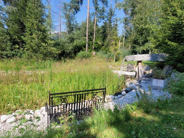 Heute war nicht viel los am See, sehr angenehm, und so spazierten wir einmal drum herum, was bei der Größe ja kein allzu langer Weg ist. Der Blick war wirklich schön. Zwei kleine Inselchen sind zu sehen und auch der Kinderspielplatz ist niedlich gestaltet mit Hexen- und Affenfiguren aus Holz.