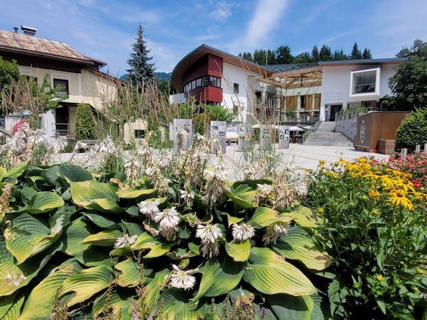 Ich lief wieder durch das Aprés-Ski-Viertel und anschließend über den Lindauweg Richtung Ortskern, der nur ca. 2 km entfernt liegt. Vorbei an hübschen Häusern und akkurat angelegten Gärten erreichte ich die Pfarrkirche Fieberbrunn und warf einen Blick hinein. Über den Kirchweg ging es direkt zur Dorfstraße und schon stand ich mittendrin in Fieberbrunn.